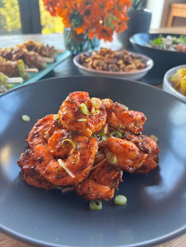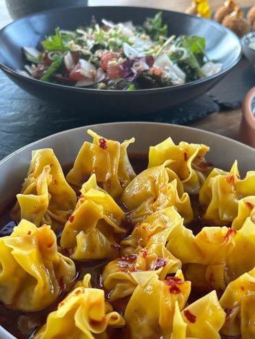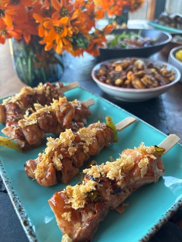 We have wanted to create a Thai Feast for quite a while, but so much of Thai cooking is done last minute, it goes against our concept of making it as easy as possible for you to finish at home so… we have widened the field and chosen some of our favourite picky bits from across South East Asia.